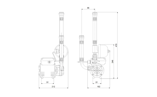 For boosting water to a single shower or simple bathroom suite where the outlets are above or below the cold water storage tank.