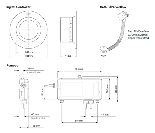 - Inlet connections: 15mm push fit (supplied) or 15mm compression