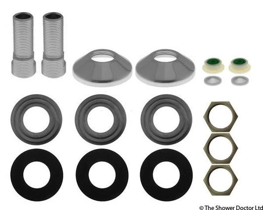 Straight Connectors. The long end has a 15mm BSP thread and the shorter has a 22mm BSP thread. The overall length is 65mm.